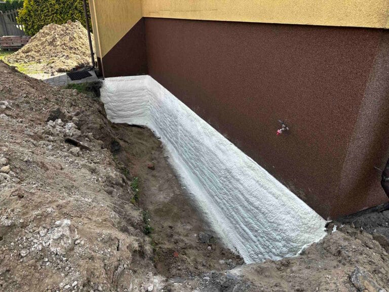 Fundamenty stanowią jedną z największych stref strat energii — dlatego potrzebna była izolacja trwała i hydroodporna.